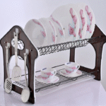 Premium Stainless Steel Dish Rack with Wooden Accents Draining Tray – Black