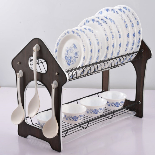 Stainless Steel Dish Rack with Wooden Accents Description