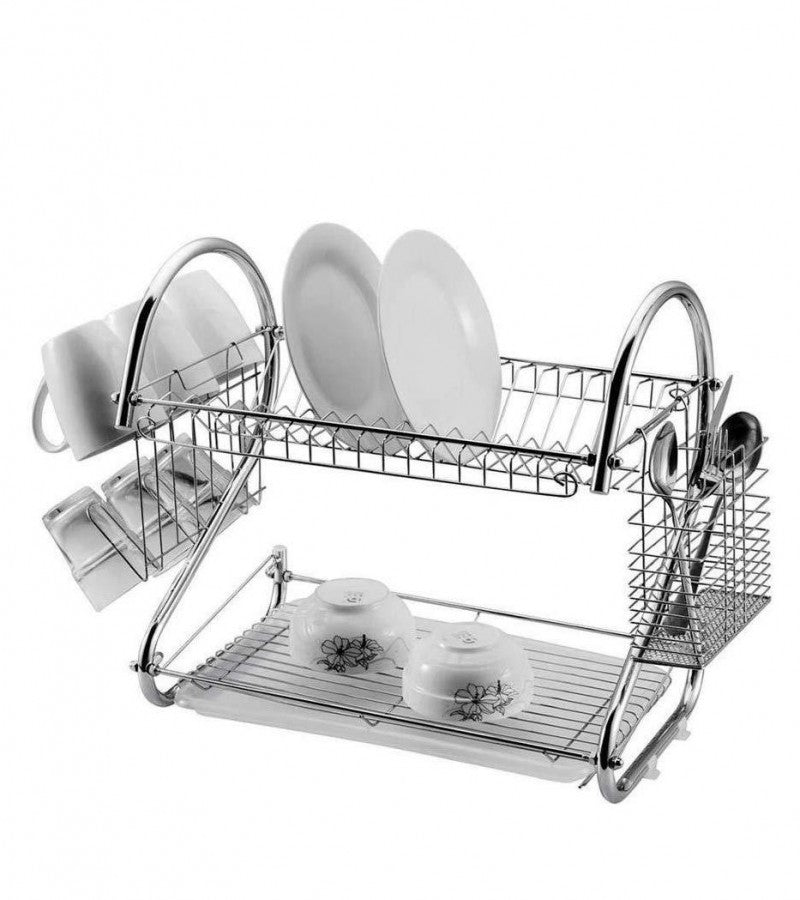 Maximize your kitchen space with our 2-tier cutlery rack, designed to hold plates, cups, glasses, and cutlery in a compact and organized manner. Made from high-quality stainless steel, this rack ensures stability and durability, while its chrome-plated finish adds a touch of sophistication.